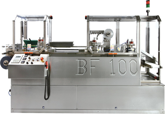 BF 100 automatic blistering machine works automatically with an alternate system, and produces industrial-quality blisters. The product can be loaded manually by the operator or automatically with the use of the “FULL BOX” universal loader.