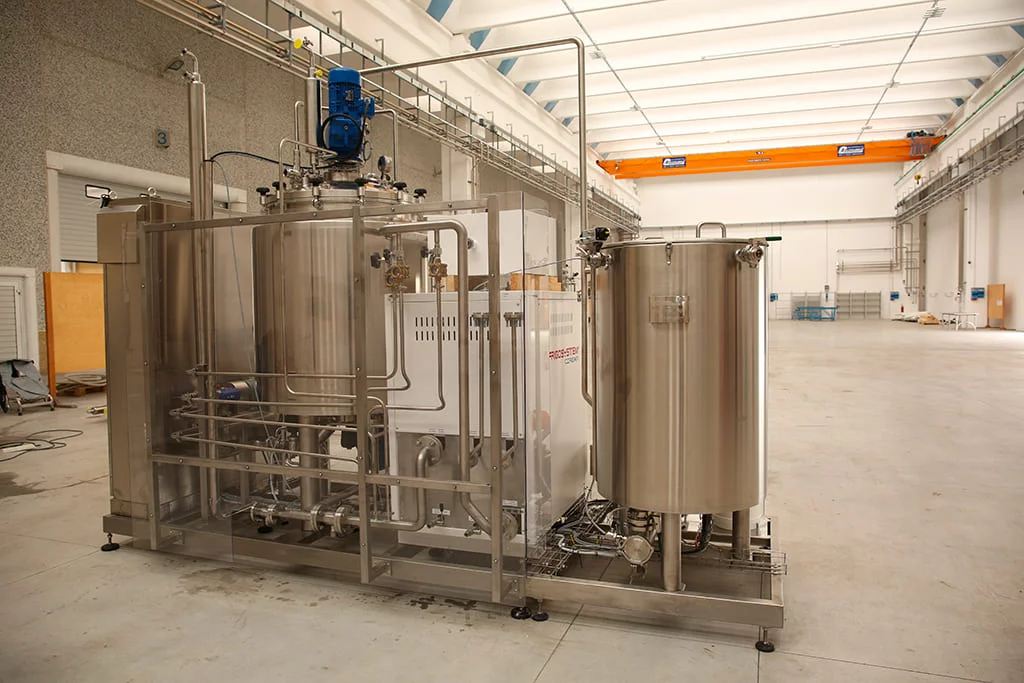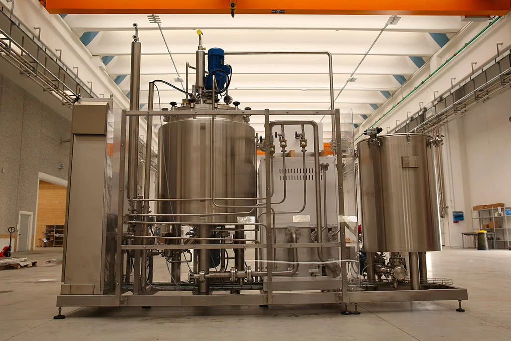 Ideally the plant has to be equipped with a CIP station, where acid and base additions can assure the cleanliness of vessels and distribution piping.