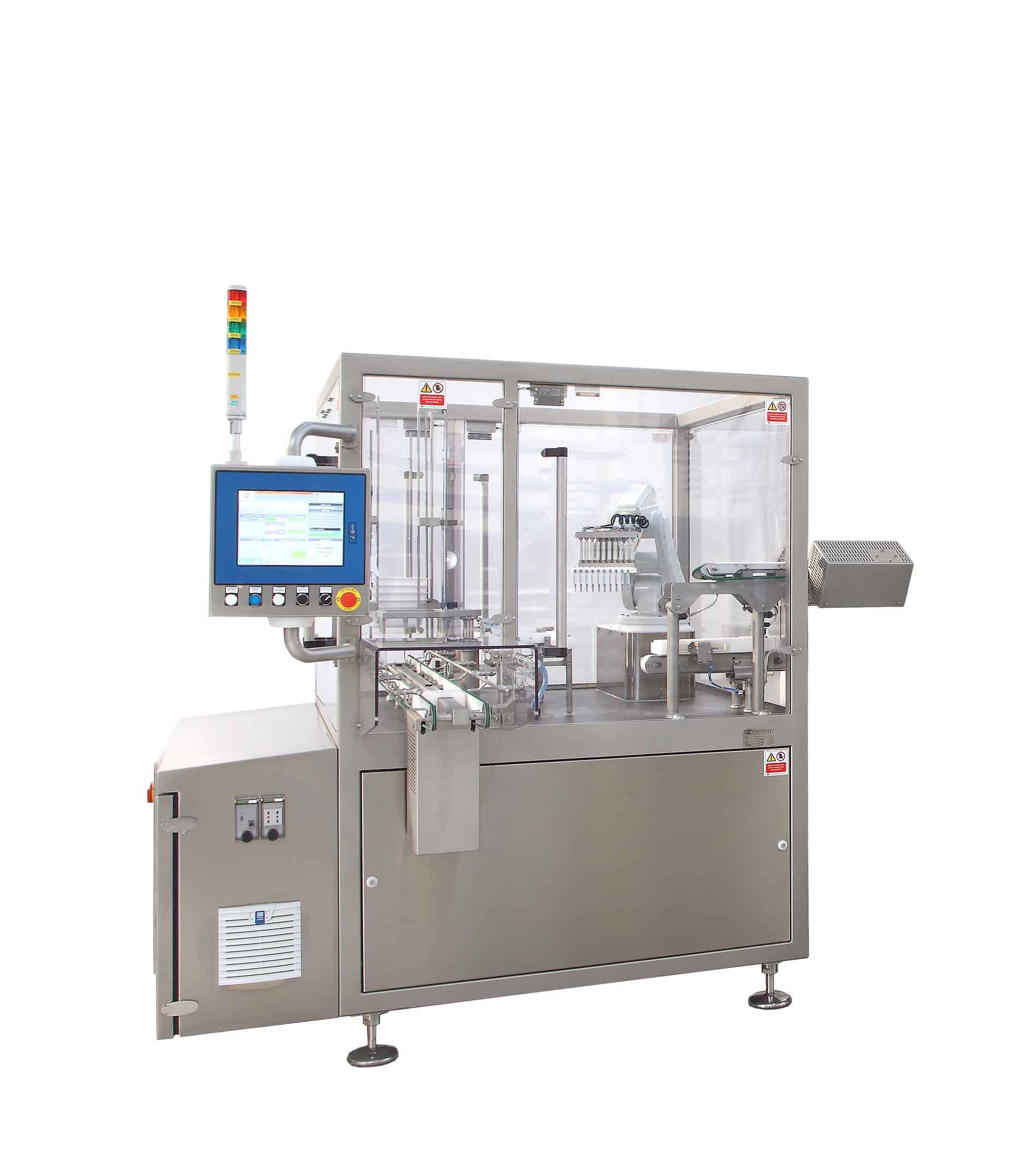 The DNS machines are designed for de-nesting syringes and cartridges in nest without damaging them. Thanks to their precision, you can reach a higher speed and automatically connect the filling machine with the final production system. DNS machines are characterized by: Robotized precise handling of syringes/cartridges, Automated tub and nest handling, Convenient operation with touch screen, and Secure and efficient recipe management.