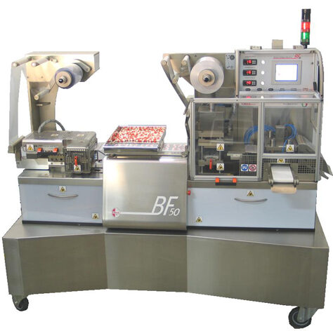 The BF 50 ST is supplied on a trolley bench with pivoting wheels, for easy movement inside production department, and is the smallest blistering machine on the automatic line. Suitable for the packaging of solid oral products, liquids, and small medical devices.